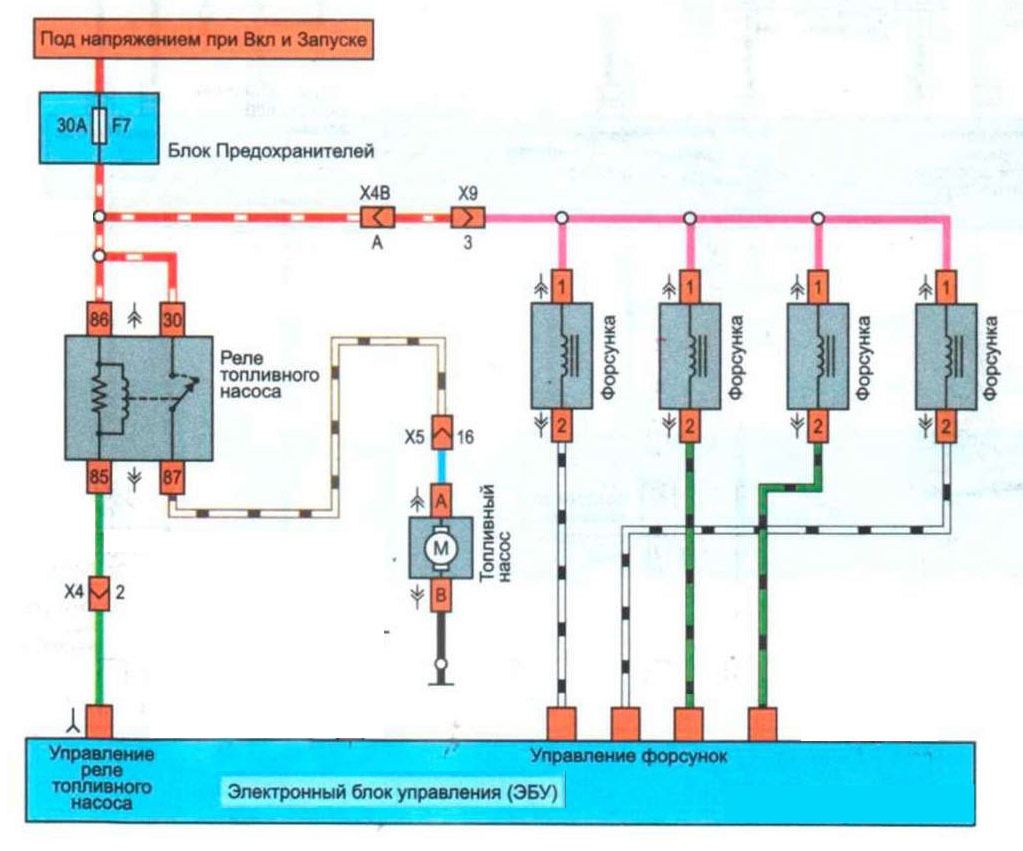 Если при включении зажигания или прокрутки стартером не слышно работы топливного насоса, тут могут быть следующие причины:
